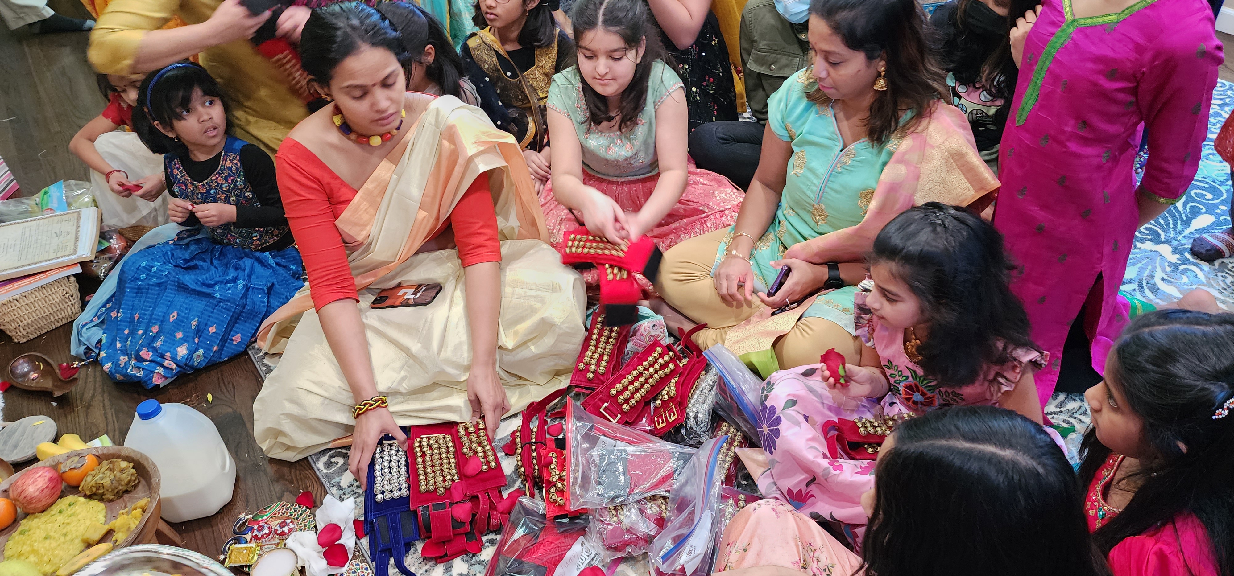 We encourage Bharatanatyam exams before the summer holiday and the grand annual recital at the beginning of the winter to all students. We also do Salangai Puja during our Academy's annual basant-panchami Saraswati puja in mid-winter.