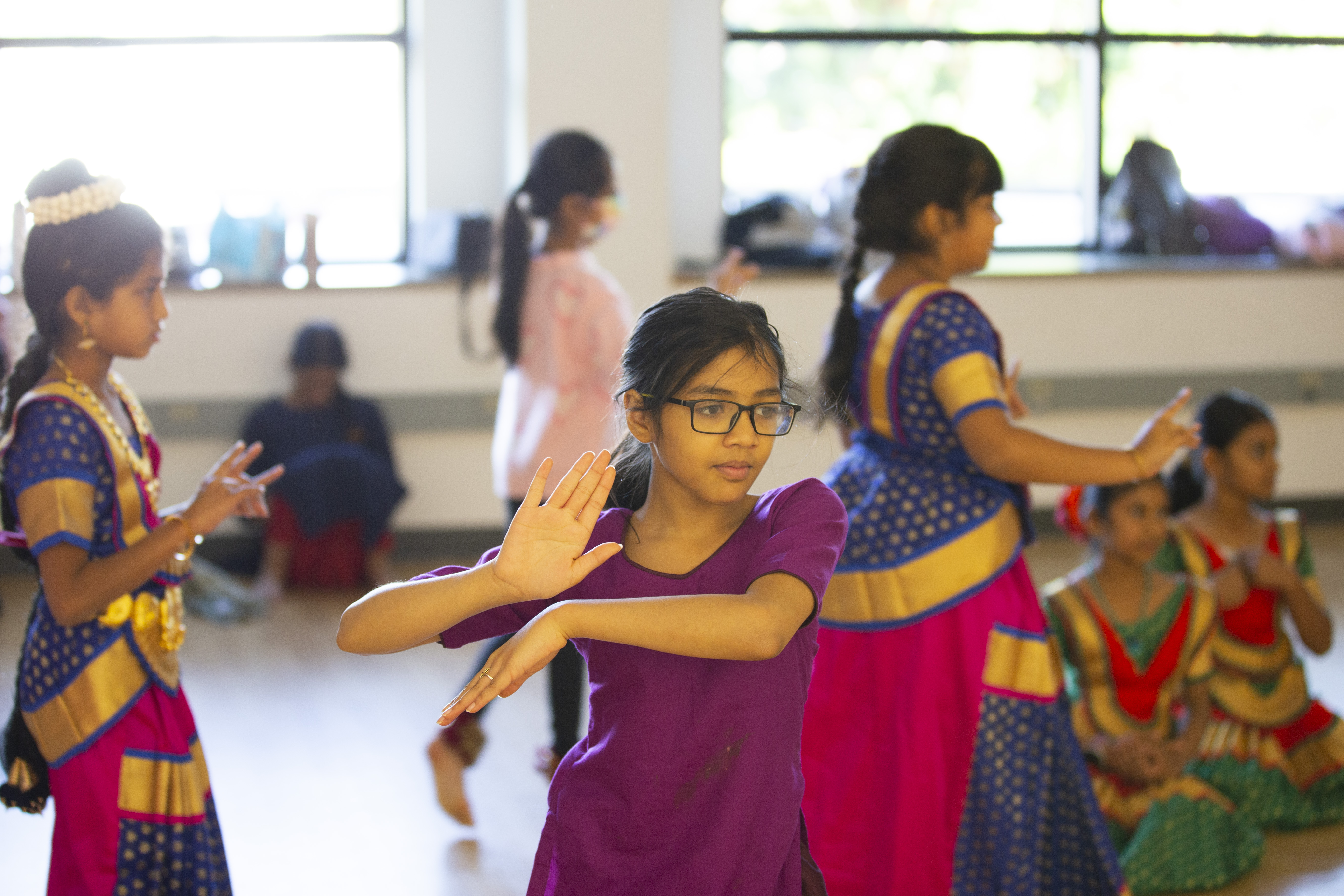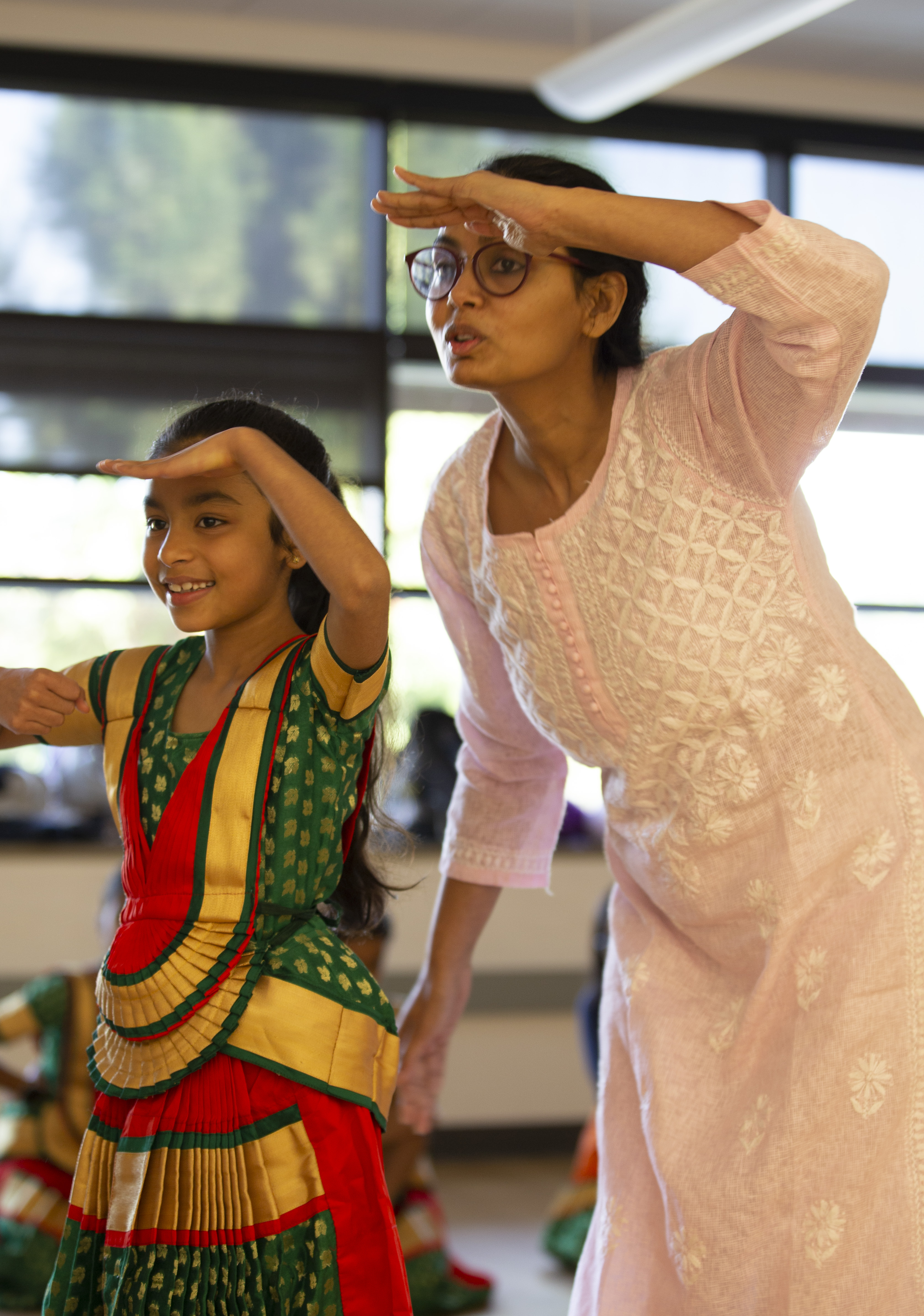 Post arangetram students assist in the Academy's group lessons and participate in Artistic Director Smt—Piyali Biswas's innovative and creative productions.